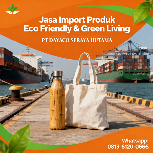 PT Dayaco Seraya Hutama menyediakan layanan import produk eco-friendly & green living dari China dengan proses cepat, aman, dan legal. Cocok untuk toko ramah lingkungan dan distributor. Layanan lengkap dari sourcing, QC, pengiriman, hingga custom clearance door-to-door.