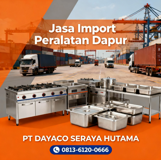 PT Dayaco Seraya Hutama menyediakan layanan import peralatan dapur profesional dari China dengan proses cepat, aman, dan legal. Cocok untuk restoran, katering, dan distributor alat dapur. Layanan lengkap dari sourcing, QC, pengiriman, hingga custom clearance door-to-door.